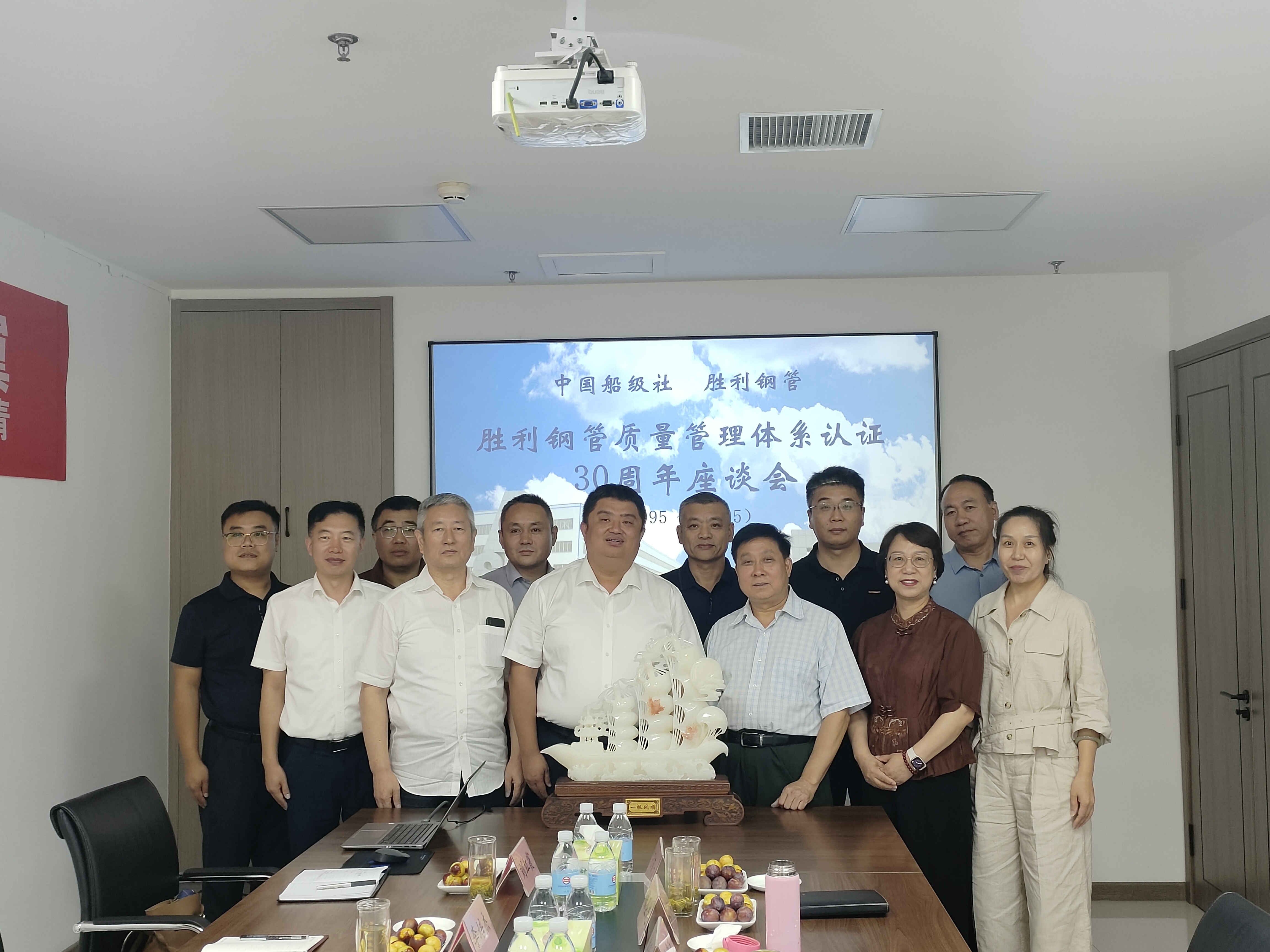 ? 2025 年 8 月 31 日,山東勝利鋼管有限公司(以下簡稱“山東勝利鋼管”)與中國船級社質量認證有限公司(以下簡稱 “中國船級社”)質量管理體系認證合作 30 周年座談會,在勝管集團會議室隆重舉行。本次座談會以 “質為本 責為魂 效為翼,三十年認證賦能企業(yè)長青” 為核心主題, 共憶合作歷程,共話未來發(fā)展。