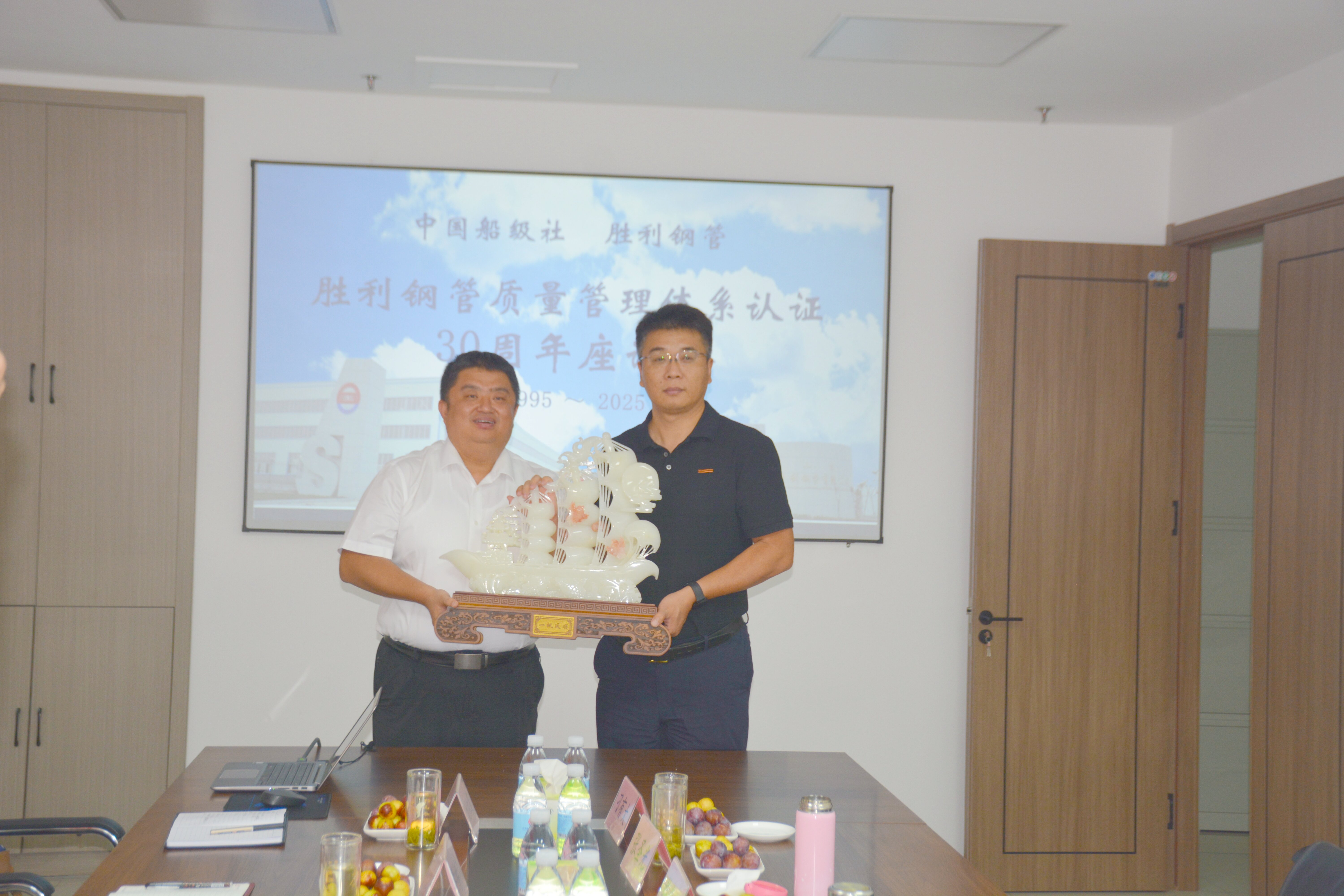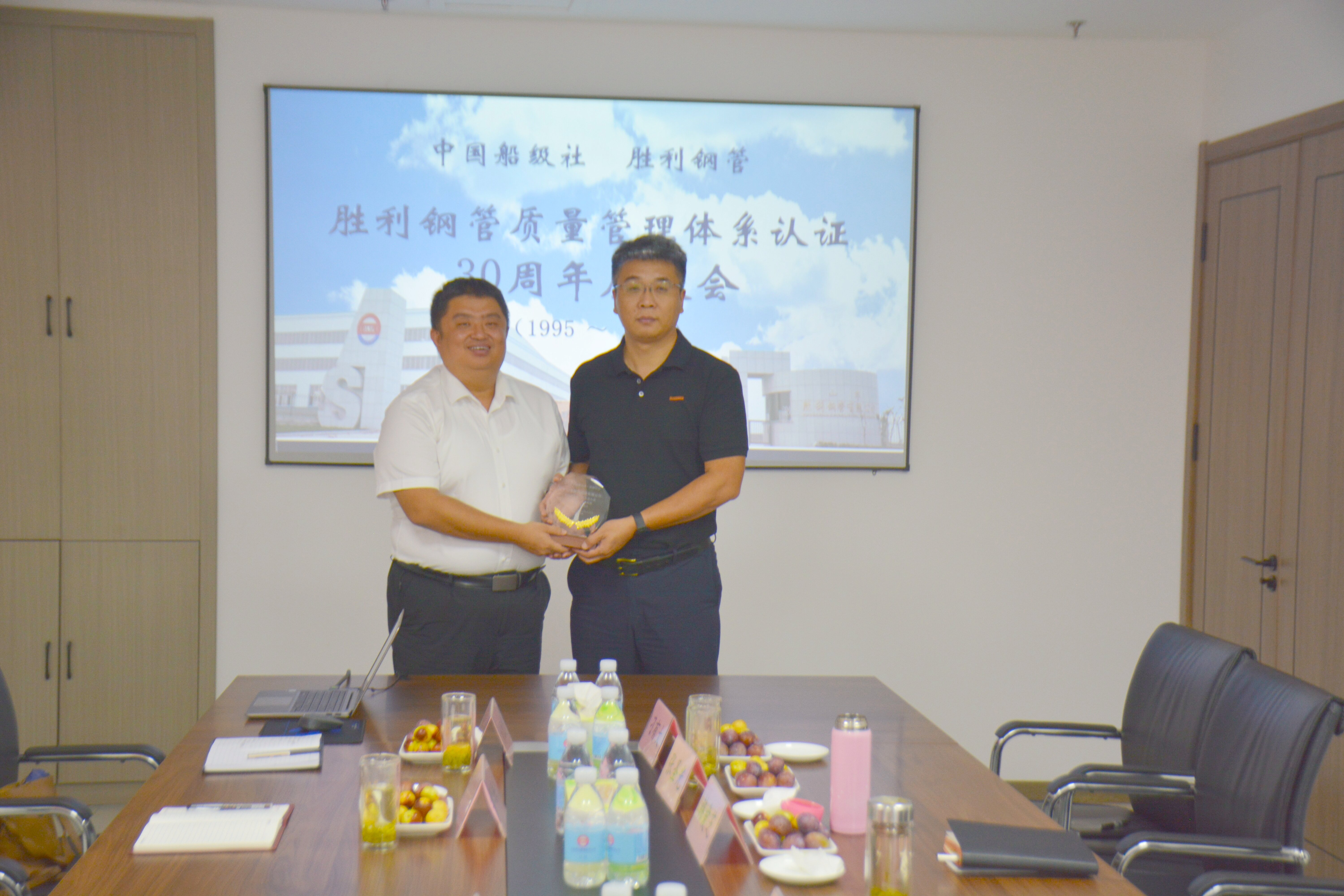 ? 2025 年 8 月 31 日,山東勝利鋼管有限公司(以下簡稱“山東勝利鋼管”)與中國船級社質(zhì)量認證有限公司(以下簡稱 “中國船級社”)質(zhì)量管理體系認證合作 30 周年座談會,在勝管集團會議室隆重舉行。本次座談會以 “質(zhì)為本 責(zé)為魂 效為翼,三十年認證賦能企業(yè)長青” 為核心主題, 共憶合作歷程,共話未來發(fā)展。